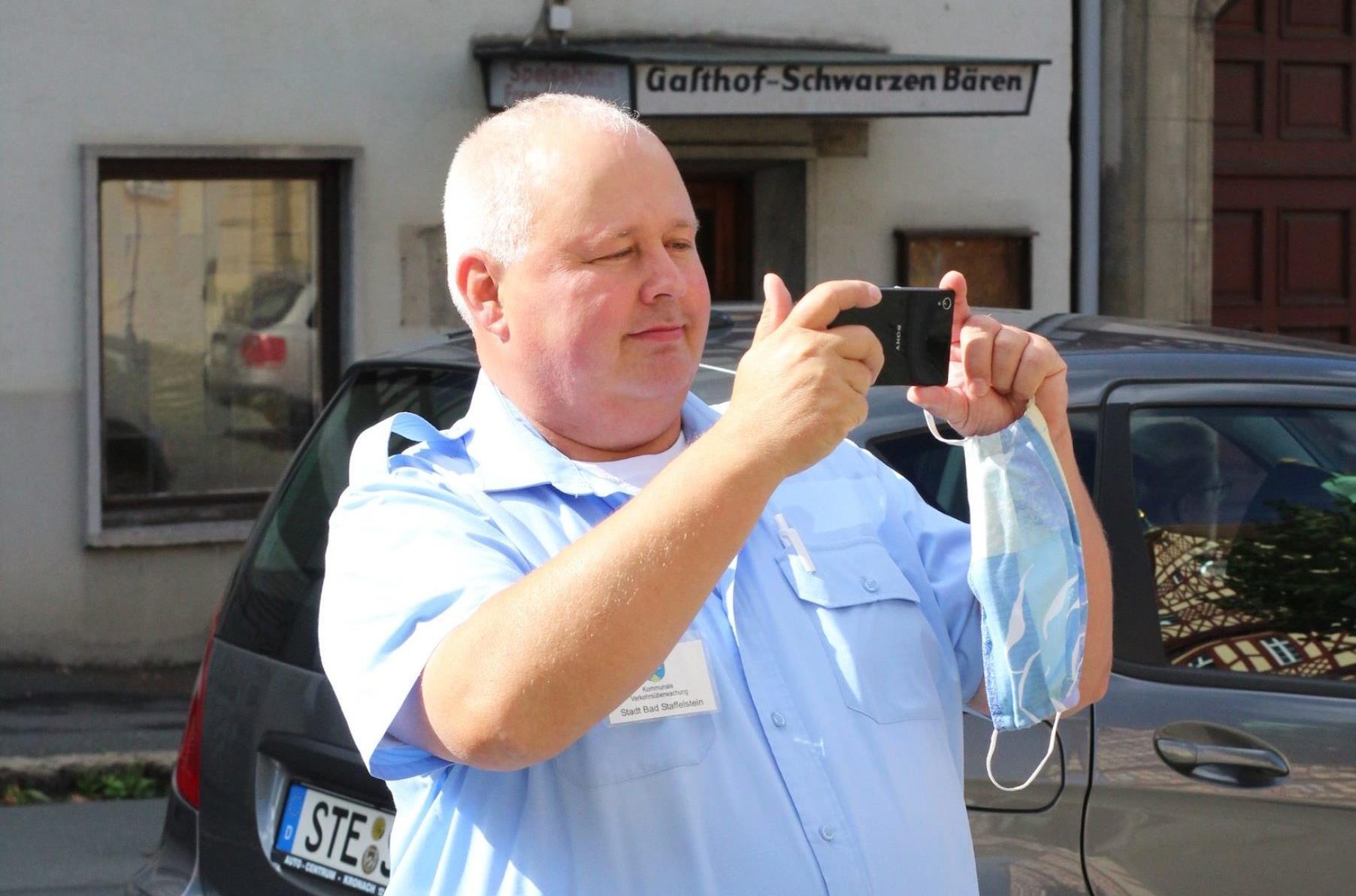 Als die zehn Minuten abgelaufen sind, druckt Burkhardt einen Beleg aus, auf dem alle Daten und der Tatbestand erfasst sind. Gemeinsam mit dem Überweisungsträger rollt er diesen zusammen und steckt ihn vorsichtig zwischen die Scheibenwischer. "Wir dürfen die Autos nicht berühren", berichtet der Michelauer. Weiter geht es in Richtung Stadtmuseum und durch die Fußgängerzone. Wo und wann er und seine Kollegin in der Bad Staffelsteiner Innenstadt unterwegs sind, ist unterschiedlich. "Am Donnerstag bin ich immer von 15 bis 17 Uhr im Büro, damit die Leute eine Möglichkeit haben, sich zu beschweren", scherzt Burkhardt.