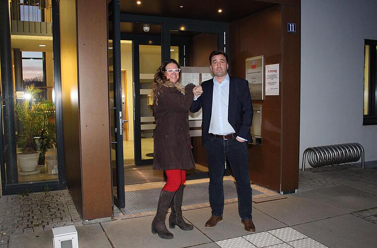 Eine echte Überraschung ist Dallners Abschneiden allerdings nicht. Hat sich der Kandidat der Freien Wählergemeinschaft Steppach doch seit Jahren vor allem im Sport für Gemeinschaftlichkeit in den Ortsteilen eingesetzt. Kandidatin Angela Nußer, 47 Jahre alt und Kunsthistorikerin, traf mit Sohn Atreju und Tochter Ronja kurz nach 18 Uhr vor dem Rathaus ein. Wegen der Corona-Krise blieb dieses allerdings für die Öffentlichkeit verschlossen. "Ich freue mich über jede Stimme", antwortete Nußer auf die Frage, ob sie denn so kurz vor der Entscheidung aufgeregt sei. Es habe wohl von Anfang an einen "klaren Favoriten" gegeben, räumte Nußer ein. Gerd Dallner, der inzwischen mit seiner Frau Nicole ebenfalls eingetroffen war, zeigte sich seiner Mitbewerberin gegenüber sehr freundschaftlich. Beide arbeiten schließlich schon seit 2014 im Gemeinderat zusammen.