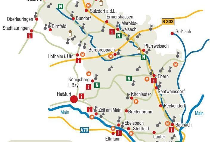 Das kulturelle Angebot im Naturpark hat es in sich: Allein die 15 Burgen und 26 Schlösser zeugen von einem reichhaltigen historischen Erbe. Insbesondere im "Deutschen Burgenwinkel" zwischen Ebern, Königsberg und Burgpreppach konzentriert sich das mittelalterliche beziehungsweise frühneuzeitliche Erbe der Region. So sind dort zahlreiche Burgruinen, wie beispielsweise Raueneck, Bramberg oder Altenstein zu finden. Auch Schlösser gibt es viele: Eyrichshof und Rentweinsdorf sind eindrucksvolle Beispiele.