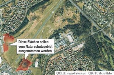 Vom Naturschutzgebiet ausgenommen werden soll ein etwa 3,5 Hektar großes Gebiet, auf das die Firma Brose für eine potenzielle Erweiterung bereits 2012 ein Optionsrecht eingeräumt bekam und dieses seit März dieses Jahres auch erworben hat. Außerdem wird dem Aero-Club Platz für den Bau eines etwaigen dritten Hangars eingeräumt. Die Privatflächen von Brose und Aero-Club sind ebenfalls ausgenommen. Dafür soll ein etwa ebensogroßes Areal von Teerflächen entsiegelt und renaturiert sowie der Seebach offen gelegt werden. Für die Stadtverwaltung laut Wirtschaftsreferent Stefan Goller "ein guter Kompromiss".
