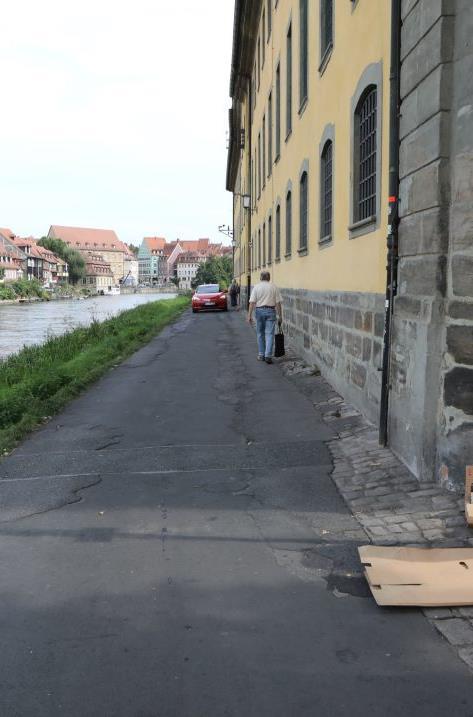 Leinritt: Die schlechte Straße mit Blick auf Klein-Venedig ist immer noch schlecht. Die Hundehaufen-Dichte am Ufer hat ebenfalls nicht abgenommen.