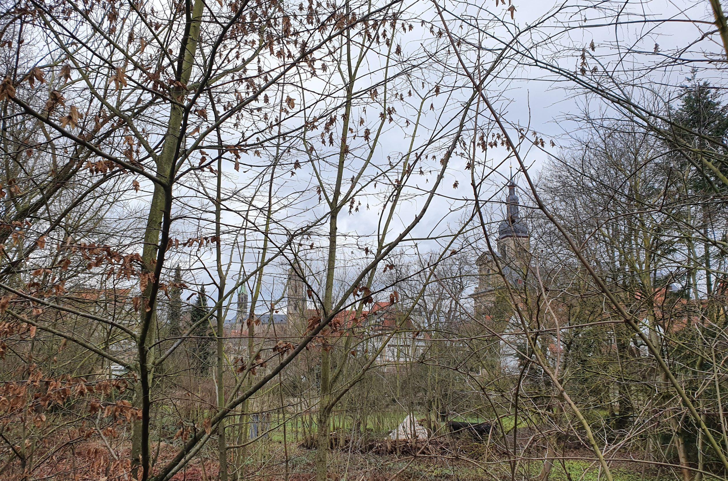 Der Vierkirchenblick ist ein Nullkirchenblick, weil Bäume die Aussicht versperren. Die stehen aber in einem Privatgarten, die Stadt überlegt deshalb, das Hinweisschild zu entfernen.