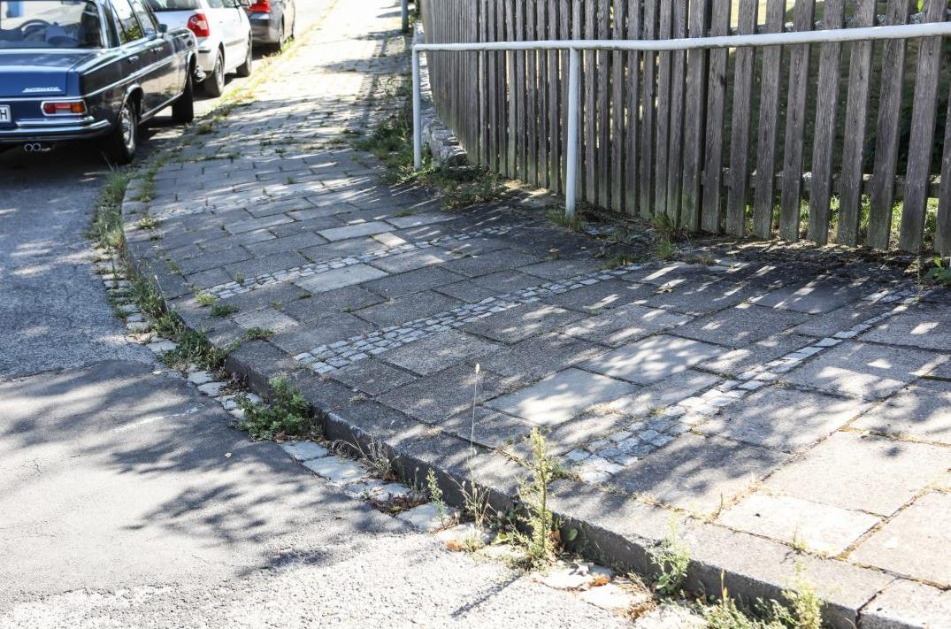 Gehsteig am Abtsberg: Stadtarbeiter haben sich die maroden Stellen angesehen, teilweise behoben.