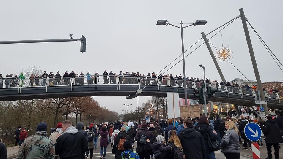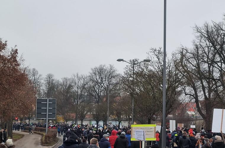 Im mittelfränkischen Ansbach haben am Samstagnachmittag (18. Dezember 2021) mehrere Tausend Menschen gegen die Corona-Maßnahmen protestiert. Das Motto der Kundgebung lautete "Ansbach läuft laut". In der Spitze nahmen an der Veranstaltung etwa 4200 Menschen teil, berichtet das Polizeipräsidium Mittelfranken.