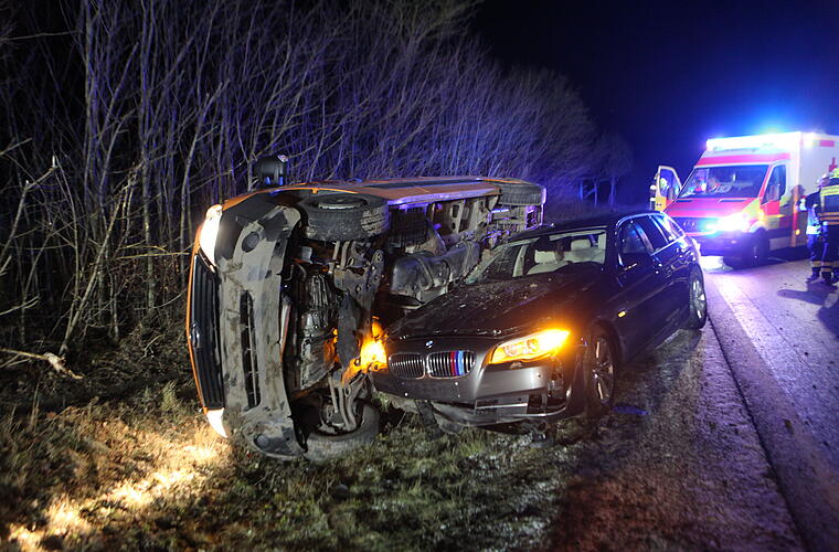 Die 41-Jährige wollte das vorausfahrende Fahrzeug überholen und verlor dann, aufgrund der winterlichen Straßenverhältnisse, die Kontrolle über ihr Fahrzeug. Ihr BMW prallte in die Seite des Straßenmeisterei-Fahrzeugs. Dieses kippte daraufhin in den angrenzenden Straßengraben.