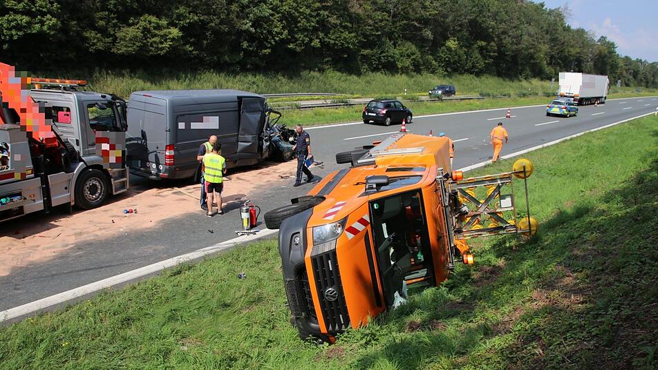 Bei einem schweren Unfall auf der A6 bei Petersaurach hat am Sonntagnachmittag ein Transporter ein Baustellenfahrzeug gerammt und umgerissen. Die Mitarbeiter der Autobahnmeisterei wollten nur dem Fahrer eines Pannenautos helfen.