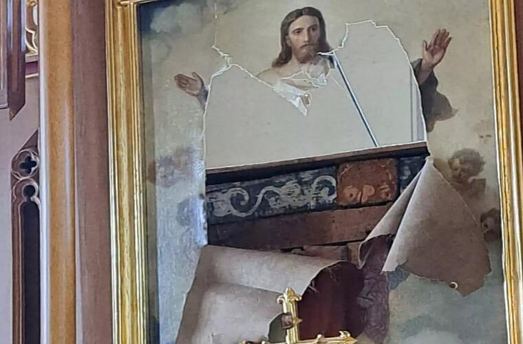 In der Zeit von Sonntag (02. Juli 2023), 11.30 Uhr, bis Montag (03. Juli 2023), 11.00 Uhr, beschädigten Unbekannte in der Heilig-Kreuz-Kirche ein Leinwandbild über dem Altar.