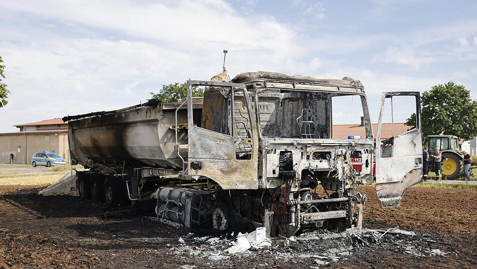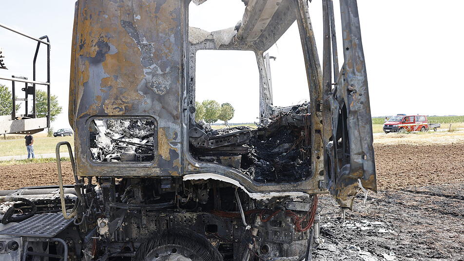 Gegen 15.22 wurde die Leitstelle über den Brand informiert, bestätigte ein Sprecher des Polizeipräsidiums Mittelfranken auf Nachfrage. Nachdem erst nur die Zugmaschine in Flammen gestanden hatte, griff das Feuer zügig auf das ganze Fahrzeug und anschließend auf ein Feld über. Nach derzeitigem Kenntnisstand fuhr der für die landwirtschaftliche Verwendung genutzter Laster zum Entladen auf ein abgeerntetes Feld. Hierbei geriet der unter dem Sattelzug befindliche Boden in Brand und entzündete auf diese Weise das Fahrzeug.