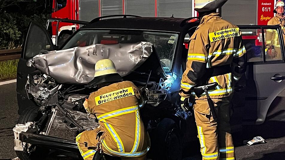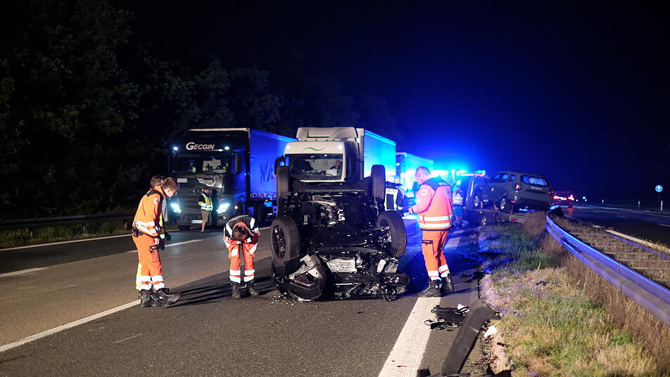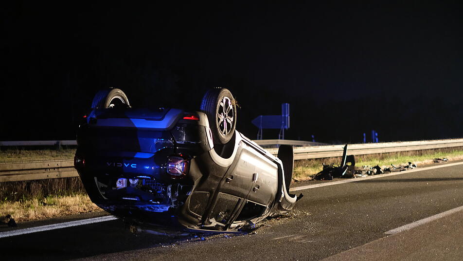 Nach Angaben der Verkehrspolizeiinspektion Ansbach ereignete sich der Unfall gegen 0.55 Uhr auf der A6 in Richtung Heilbronn. Wie ein Polizeisprecher sagte, hatte sich ein mit drei Autos beladener Fahrzeug-Transporter auf der A6 bei Herrieden nahe Nürnberg aus bislang ungeklärter Ursache aufgeschaukelt und löste sich vom Zugfahrzeug. Hierbei stürzte eines der Fahrzeuge vom Anhänger und blieb auf dem Dach liegen. In der Folge fuhren weitere Fahrzeuge in die Unfallstelle.