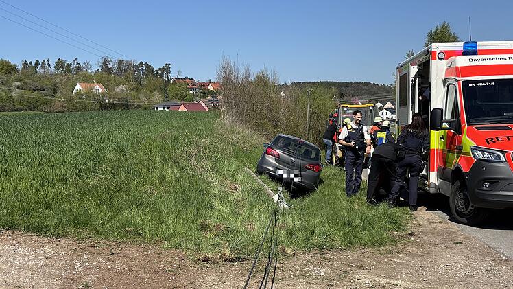 Bei einem Verkehrsunfall in Rügland (Landkreis Ansbach) ist eine 87-jährige Autofahrerin von der Fahrbahn abgekommen und gegen einen Telefonmast geprallt.