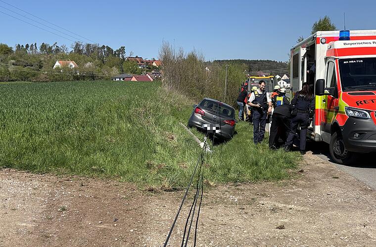 Laut der Polizeiinspektion Ansbach war die Dame mit ihrem Opel Corsa am Mittwoch, 23. April 2026, auf der Ortsverbindungsstraße von Stockheim in Richtung Unternbibert unterwegs. Gegen 13.40 Uhr verlor die 87-Jährige aus bislang ungeklärter Ursache die Kontrolle über ihr Auto.