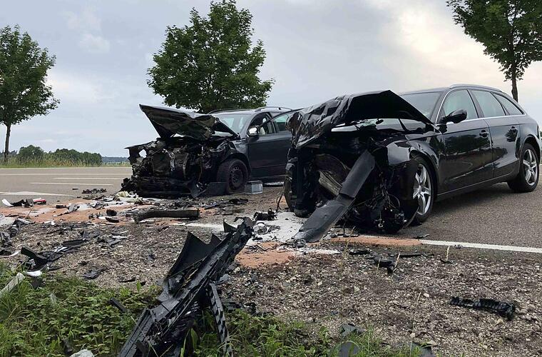 Bei einem frontalen Zusammenstoß zweier Autos auf der Staatsstraße 2218 sind im Landkreis Ansbach vier Menschen schwer verletzt worden. Eine 78-jährige Frau starb noch am Unfallort.