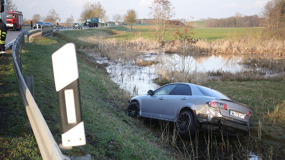 Ein junger Mann verliert auf der Staatsstraße bei Ornbau die Kontrolle über sein Auto und landet in einem Wassergraben. Die Polizei beschlagnahmt seinen Führerschein.
