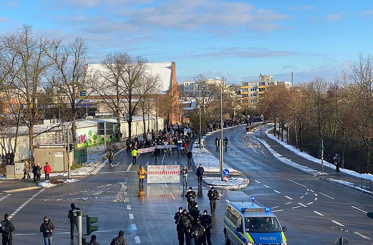 Insgesamt fast 3000 Menschen nahmen am Samstagnachmittag an drei Versammlungen im Stadtgebiet teil. Die mit Abstand größte von ihnen war ein Zug unter dem Motto "Franken läuft laut".