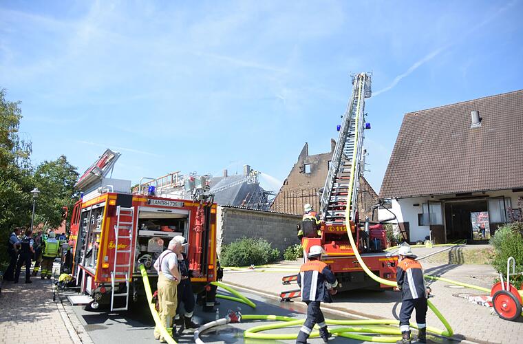 Durch Funkenflug geriet auch die Stallwand des Nachbaranwesens in Brand. Den Einsatzkräften gelang es jedoch, das Feuer schnell zu löschen. Insgesamt 120 Feuerwehrleute der Freiwilligen Feuerwehren aus Windsbach, Neuendettelsau, Abenberg, Wassermungenau, Mitteleschenbach, Wolframs-Eschenbach und Heilsbronn kämpften die Flammen schließlich nieder, konnten jedoch nicht verhindern, dass Scheune und Stall abbrannten.