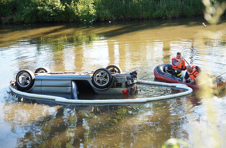 Das Auto wurde unterdessen aufwendig aus dem Wasser mittels Kran und Seilwinde geborgen und dürfte, laut Polizei, nur noch Schrottwert haben. Die Feuerwehrkräfte sorgten dafür, dass auslaufende Treibstoffe sich nicht im Wasser verbreiten konnten.