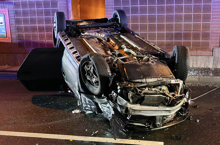 Auto kracht gegen Tunnelwand und überschlägt sich - zwei Verletzte