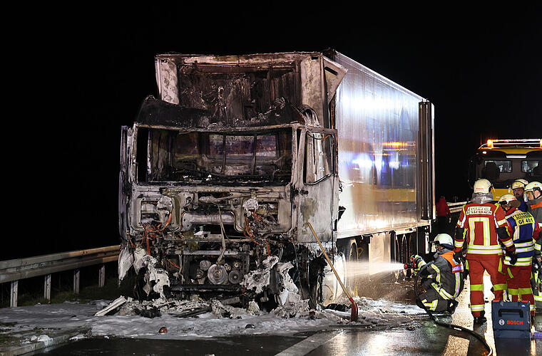 Aus bisher ungeklärter Ursache fing ein Lkw auf der A3 im Kreis Aschaffenburg in der Nacht auf Mittwoch Feuer. Der Trucker und sein Beifahrer hatten noch einmal Glück.