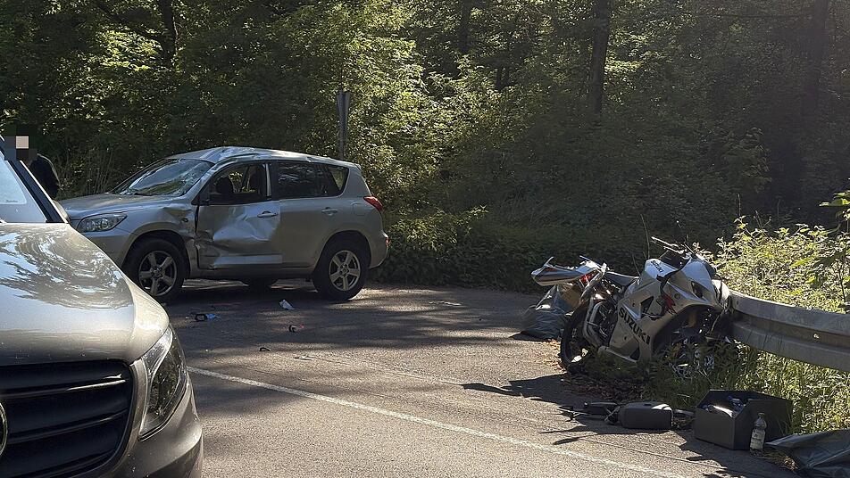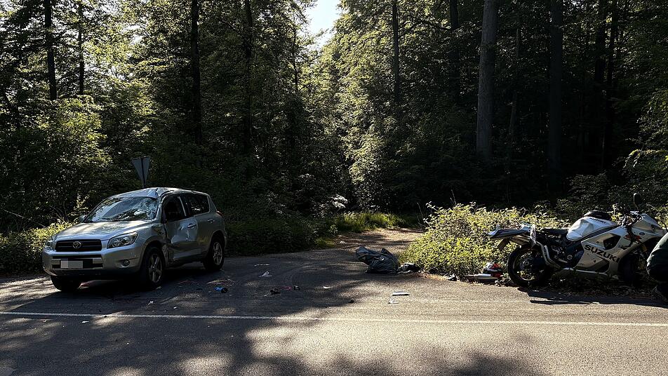 Im Fall des tödlichen Unfalls nahe des Weibersbrunner Ortsteils Rohrbrunn missachtete nach ersten Erkenntnissen der Polizei ein 39-jähriger Auto-Fahrer die Vorfahrt des Motorradfahrers, was zur Kollision führte.
