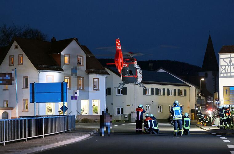 Bei einem Deckeneinsturz in Schöllkrippen im Kreis Aschaffenburg sollen am Donnerstagabend (06. April 2023) drei Menschen teils schwer verletzt worden sein. Da ein Rettungshubschrauber im Ort landen musste, wurde die Ortsdurchfahrt für eine Stunde komplett gesperrt.