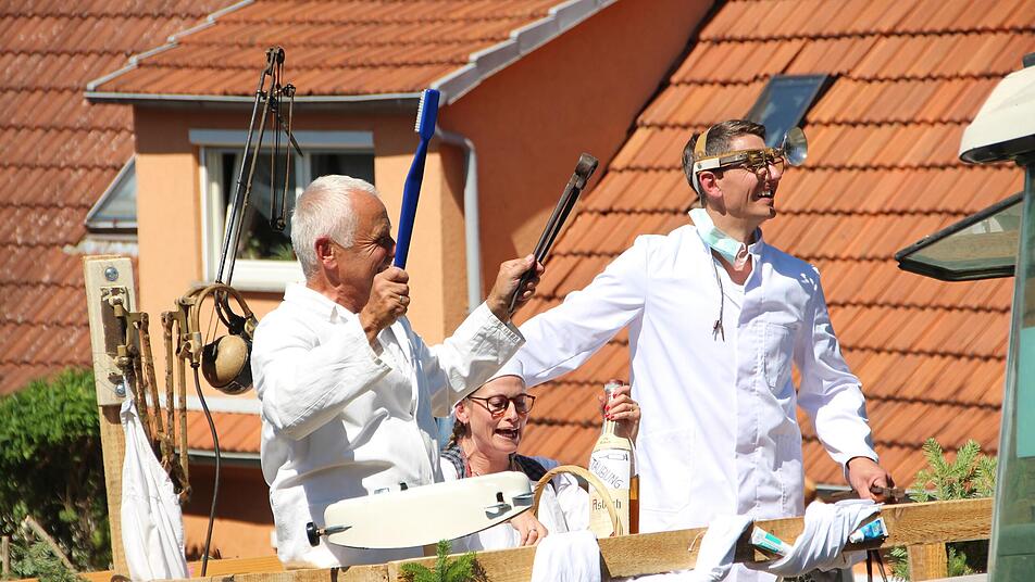 Von Nüdlingen war der Ministerpräsident dagegen angetan. Er kam vorbereitet für seine Festrede in Nüdlingen an. Und: Der Fußweg vom Gewerbegebiet hoch zum Festplatz mit der anschließenden Abnahme des Festumzugs bot ihm Gelegenheit, sich umzusehen. Den Eindruck, der sich ihm aufgedrängt hatte, tat er in seiner Rede Kund: "Das Ehrenamt und das Engagement prägen Nüdlingen." Im vollen Festzelt kam das an.