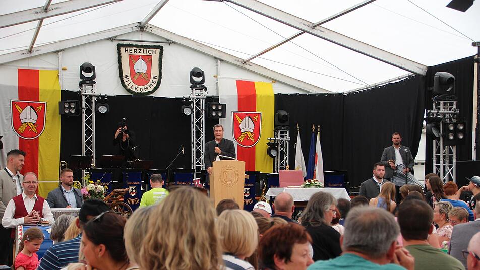 Markus Söder war als Schirmherr der 1250-Jahr-Feier in Nüdlingen zu Gast. Seine Rede: Eine Lobeshymne aufs Ehrenamt. Außerdem gab er den Bürgern ein Versprechen.