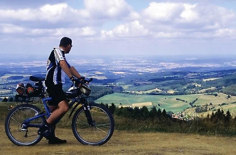 Zugegeben, das Bergauffahren muss man mögen. Wenn man das über 13 Kilometer hinweg auf sich nimmt, genug zu trinken dabei hat, wird man auf der Platzer Kuppe mit einer sehr schönen Aussicht belohnt.