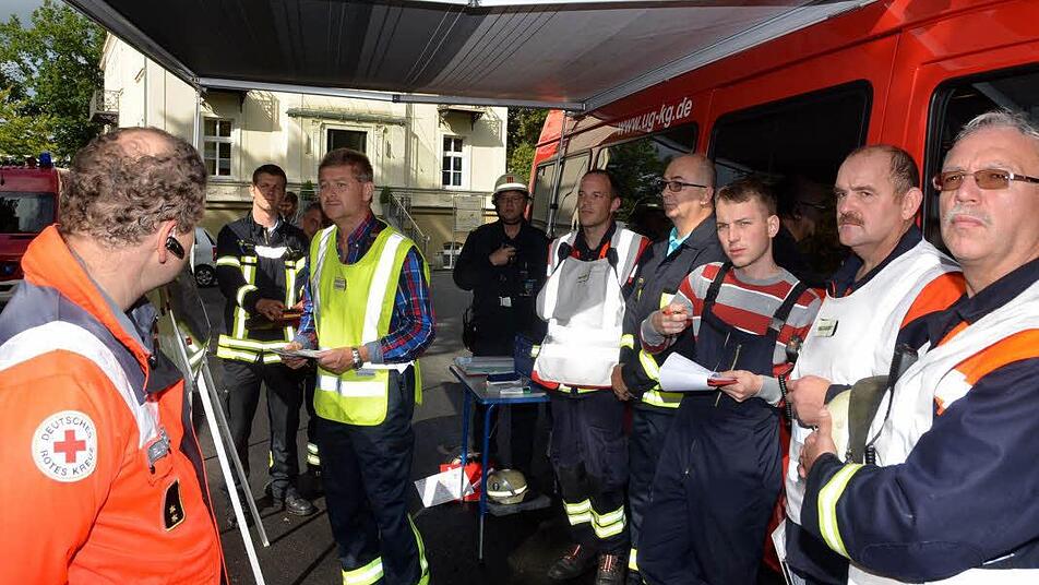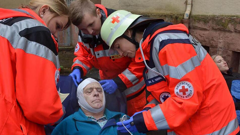 Neben den Sanitätern und Ärzten stand sogar ein aus dem gesamten Landkreis zusammengezogenes Team der Psychosozialen Notfallversorgung bereit, so dass mit Verletztendarstellern, dem RUD-Team, also der Schminktruppe, Feuerwehrleuten, Klinikpersonal und Rotem Kreuz rund 200 Personen aktiv an der von Stadtbrandinspektor Harald Albert, Stadtbrandmeister Michael Wolf und Felix Keßler ausgearbeiteten und vorbereiteten Übung teilnahmen.