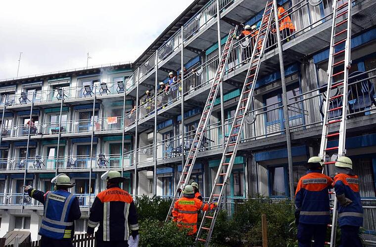 ihrer Bewegungsfreiheit eingeschränkt waren. Sei es durch vorangegangene Krankheiten, oder eben durch den Brand, sie konnten sich auf dem Fluchtbalkon, der über die ganze Hauslänge reicht, nicht selbstständig bewegen.