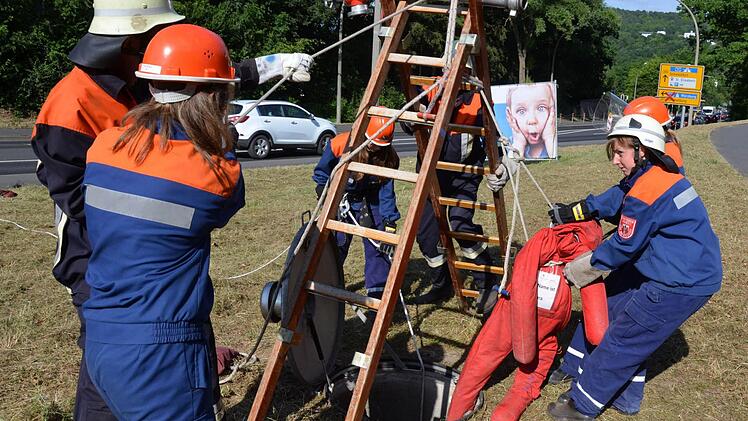 Ganz egal, ob die beiden knallroten Übungspuppen nun aus einem Schacht geborgen werden mussten oder über die Steckleiter gerettet wurden, sie waren die einzigen Teilnehmer, die an diesem Wochenende nicht schwitzten.