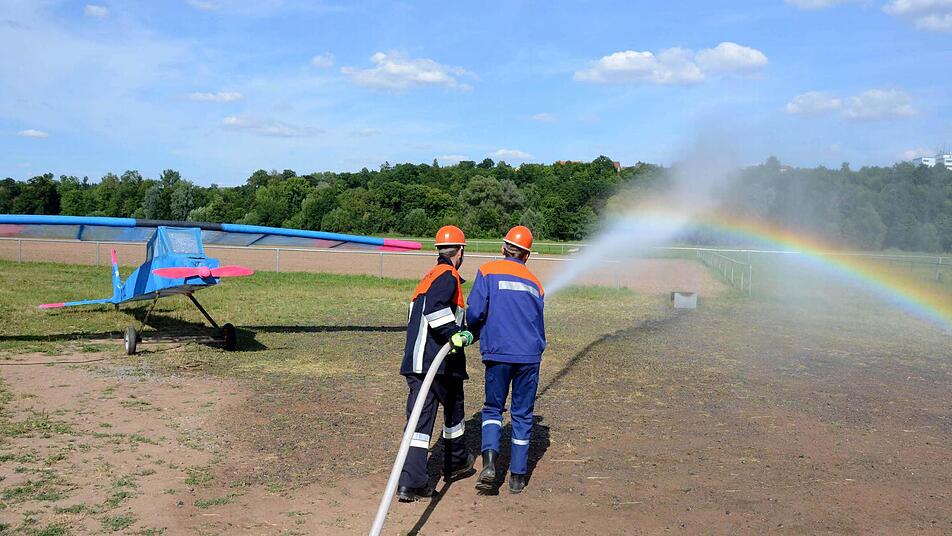 "Die Schwierigkeit lag nicht allein in der Größe des Fliegers, der immerhin eine Spannweite von über sieben Meter hat. Er musste ja auch noch qualmen, durfte aber nicht gleich beim ersten Einsatz abbrennen, denn alle sechs Jugendgruppen absolvierten alle Stationen", so Ralf Schubert. "Hervorragend gemacht, dieses Flugzeug! Da sieht man, wie Ralf Schubert sein Herzblut in die Ausbildung der Feuerwehrjugend steckt", so Stadtbrandinspektor Harald Albert.
