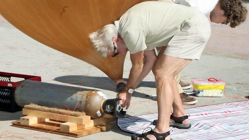 Während der 17-Jährige noch einmal alle Gerätschaften auf Funktionsfähigkeit überprüft, hält Opa Otto Lotz bereits den mit Helium gefüllten Ballon in Händen. Mutter Andrea hilft beim Verpacken und Verschnüren der Messbox. Vater Andreas dokumentiert jeden Arbeitsschritt mit dem Fotoapparat und filmt - auch das gehört zum Experiment dazu.
