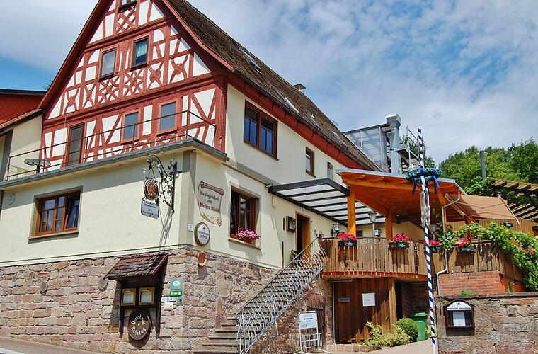 Die im Haus in Stein gehauene Jahreszahl 1615 weist auf das Baujahr der einstigen Kutschenstation hin, die damals noch "Zum Roten Rösslein" hieß und deren erster Betreiber nach Erteilung des Schankrechtes durch das Kloster Frauenroth schon die durchreisenden Kutscher und Fahrgäste bewirten durfte.