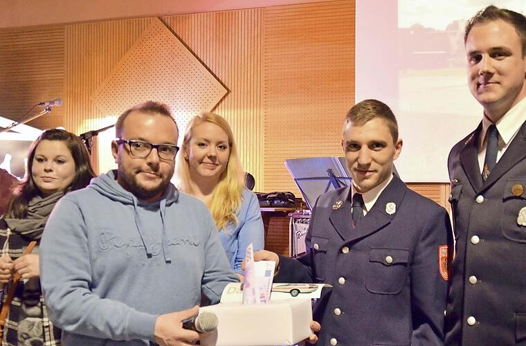 Die Rettungssanitäter freuten sich über die Finanzspritze. Das Einsatzfahrzeug muss ersetzt werden. Feuerwehrverein und Konzertbesucher spendeten.