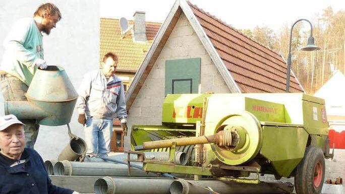 Mitarbeiter einer Firma aus dem Steigerwald luden in stundenlanger Arbeit mit Hilfe eines Frontladers die alte Strohpresse und ein Getreidegebläse samt Rohren auf. Das Unternehmen hat sich auf Import und Export von landwirtschaftlichem Gerät spezialisiert. "Ob wir auch noch unseren alten Mähdrescher loswerden, wissen wir nicht", sinniert Stahl. "Wir dürfen gar nicht daran denken, wie viel Geld wir mal in unsere Maschinen gesteckt haben." Jetzt bekommt man so gut wie gar nichts mehr dafür. "Das tut auch ziemlich weh", gesteht er.