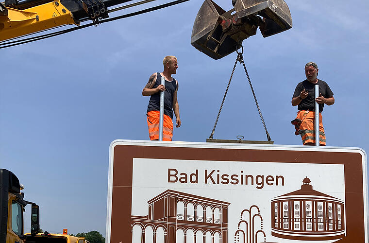 Insgesamt hat die Stadt Bad Kissingen vier Schilder vor den Ausfahrten nach Bad Kissingen auf den Bundesautobahnen A7 und A 71 aufstellen lassen.