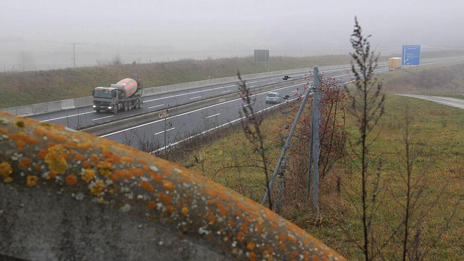 Die Autos peitschen vorbei. 40-Tonner prügeln die Steigung bergauf. Der Nebel hängt über der Fahrbahn. Der Belag glänzt feucht. Nicht nur die Nässe sammelt sich auf dem dunklen Asphalt der A71. Unsichtbar, aber da: Streusalz, Reifenabrieb und Öl. Diese Stoffe sind gefährlicher als sie klingen. Vor allem auf diesen sieben Kilometern auf der Höhe von Münnerstadt.