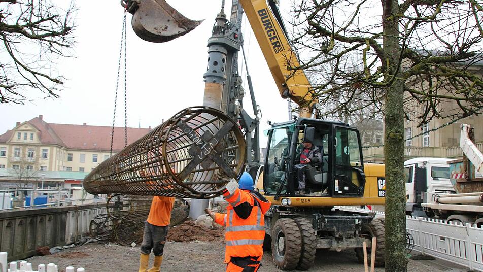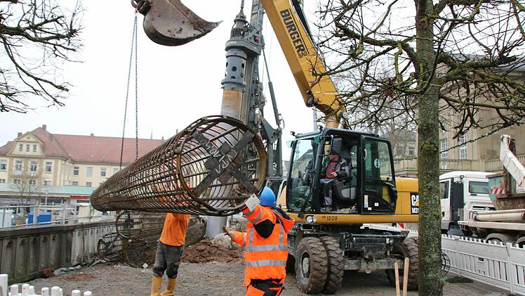 "Das machen wir als erstes, damit der Beton über den Jahreswechsel aushärten kann", berichtet Hornung. Im neuen Jahr könne dann der Platz für das Technikgebäude ohne weitere Sicherungsmaßnahmen abgegraben werden. Das Gebäude werde zudem an den Bohrpfählen verankert, damit es bei Hochwasser nicht aufschwemmt. Die hintere Hälfte des Gebäudes wird also von der Terrasse entlang der Ludwigstraße überdeckt, vorne ragt es rund zweieinhalb Meter in den Rosengarten hinein. "Die Front wird in der Art der jetzigen Mauer gestaltet", kündigte Hornung an. Bereits vor Baubeginn gab es Kritik an der geplanten Rampe als Baustellen-Zufahrt: Parallel zum Promenadenweg wird die südöstlichen Ecke vorübergehend bis auf Höhe zur Ludwigsstraße aufgeschüttet. Zur Vorbereitung wurde bereits ein Kanal erneuert und die Balustrade zum Teil abgebaut.