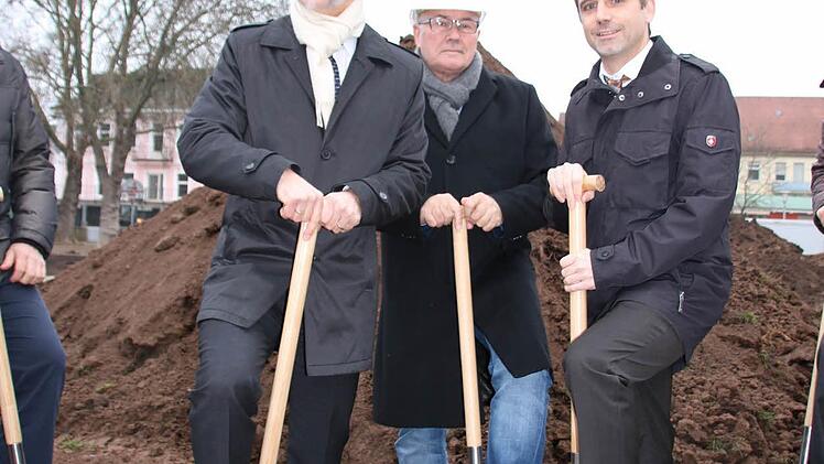 Mit einem offiziellen Spatenstich wurde die Modernisierung des Springbrunnens im Bad Kissinger Rosengarten auf den Weg gebracht. Noch in dieser Woche werden Bohrpfähle gegossen, bis Weihnachten entsteht die Zufahrt.