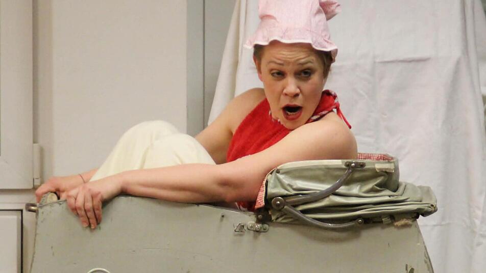 Ganz überzeugend brachte die Sopranistin das Publikum mit dem Spielzeuglied, im Vorkriegskinderwagen sitzend, zum Schmunzeln und mitsingen.