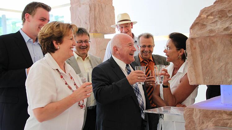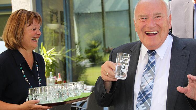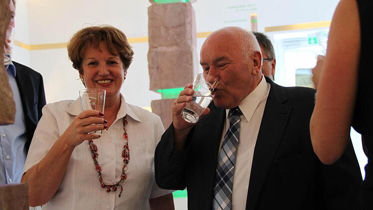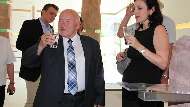 Frisches Wasser aus der Sinnberger Quelle sprudelt ins Glas von Ernst Hinsken. "Das ist der Champagner unter unseren Wässern", sagt Bettina Lange, zuständig für Marketing und Öffentlichkeitsarbeit bei der Staatlichen Kurverwaltung. Hinsken nimmt einen Schluck. "Sehr gut", sagt er und trinkt gleich noch einmal.