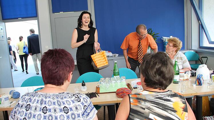 Aber bevor er das tut, stellt ihm Bürgermeisterin Brigitte Meyerdierks (CSU) die Damen des Strickkreises vor, die sich regelmäßig dort treffen. "Bleibt so tüchtig und sozial eingestellt", sagt Hinsken zu ihnen. "Ich hab auch ganz viele solcher Socken von meiner Oma", ruft Dorothee Bär noch beim Rausgehen. Die Damen lachen.
