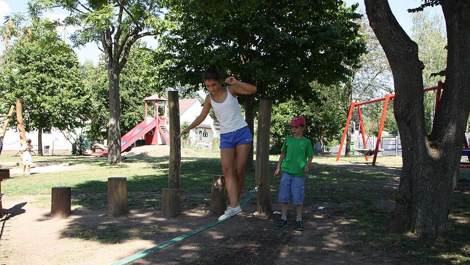 "Das Balancieren ist auch für Ältere eine Herausforderung", sagt die zwölfjährige Giulia, während sie sich auf dem Gleichgewichtsparcour über Seilbrücken und Gummibänder von Stamm zu Stamm hangelt. Automatisch fassen sich die Kinder dabei an den Händen, geben Hilfestellung und lösen die Aufgaben als Team gemeinsam.