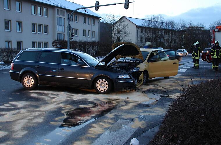 Linksabbieger rammt Passat "Vermutlich war der Fahrer in dem gelben Polo schuld", sagte der Polizist. Der wollte von der Pfalzstraße links auf den Nordring einbiegen, rekonstruierte Lars Moraw. Zwar zeigte die Ampel Grün, als Linksabbieger hätte er dem Verkehr aber den Vorrang geben müssen. Das missachtete er und stieß mit einem Passat zusammen, der den Nordring in Richtung Pfalzstraße überqueren wollte. Mit der Front rammte der Fahrer des gelben Polos den rechten Kotflügel des schwarzen Passats. In dem Polo saßen ein Mann, eine Frau und drei Kinder. Die Fahrerin des Passats hatte zwei Kinder an Bord. Die Insassen wurden leicht verletzt und mit dem Sanitätswagen ins Krankenhaus gebracht.