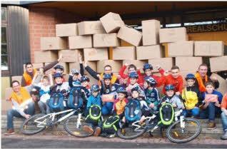 So entstand im Herbst 2013 die Idee einer Sammelbestellung für diese "Bikepool-Schulen" : 60 Sicherheitsrucksäcke mit Werkzeug und Erste-Hilfe-Material, 40 Fahrradhelme und über 250 Mountainbiketrikots konnten mit Hilfe einiger Sponsoren bestellt werden. Dieses Material wurde von Schülern der Realschule Bad Brückenau in mehr als 80 Päckchen und Paketen verpackt und verschickt.