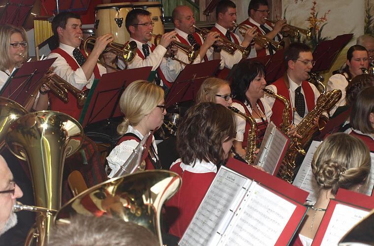 Selbst die letzte Ecke nutzten die 230 Besucher, um sich ein Plätzchen im Pfarrsaal zu sichern. Die Mühen jedenfalls lohnten sich; denn die 32 Musiker unter ihrer Dirigentin Doris Eckert begeisterten mit ihren Stücken, eröffnet mit "Festmusik der Stadt Wien" von Richard Strauß. Nächste Station war Schottland mit "Crith Mhonadh" nach einem alten Kirchenlied zum Psalm "Der Herr ist mein