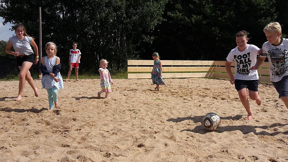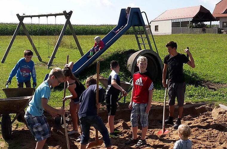 Selbst die Kinder und Jugendlichen packten eifrig mit an, um den Sand im Sandkasten zu erneuern.