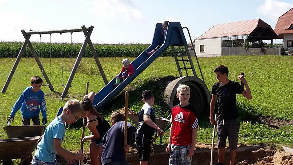 In Singenrain wird Dorfgemeinschaft schon immer groß geschrieben wird: Kleine und große Helfer legen einen neuen Bolzplatz an.