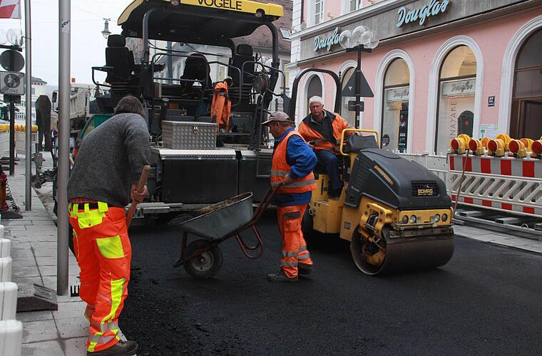 Das Asphaltband ist ein Provisorium, das als Überbrückung dienen soll, bevor im nächsten Jahr die aufwendigen Sanierungsarbeiten der Fußgängerzone und deren Untergrund starten sollen.