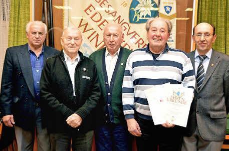 Bei der jüngsten Jahreshauptversammlung der Sänger gab es für ihn einen Hattrick von Urkunden zum 60. Jahrestag seines aktiven Chorgesanges. Ewald Krebs überreichte für den Gesangverein Edelweiss Winkels eine Urkunde. Von Siegfried Gottwald, dem Gruppenvorsitzenden des Fränkischen Sängerbundes, gab es eine von seinem Verband, wie auch eine vom Deutschen Chorverband.